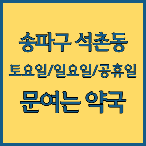 서울 송파구 석촌동 주말 문여는 약국 찾고 계셨나요? 이 글에 서울 송파구 석촌동 토요일, 일요일, 공휴일, 야간, 명절에 문여는 약국 주소, 전화번호, 영업시간 정보 자세히 정리했습니다. 휴일 당번 약국, 연중무휴약국, 심야약국까지 자세히 확인해보세요.