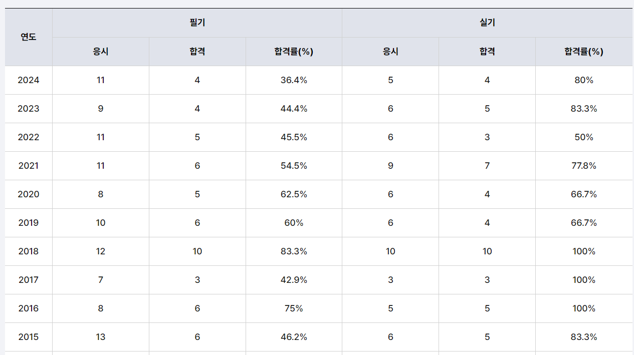 - 합격기준: 단답형 및 주관식 눈술형 (1교시 당 100분)