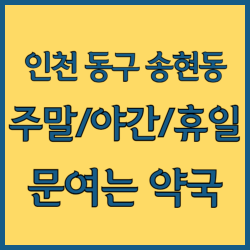 아래는 인천 동구 송현동 주말 문여는 약국 영업시간 리스트입니다.