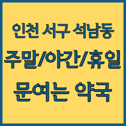 인천 서구 석남동 주말 문여는 약국 찾고 계셨나요? 이 글에 인천 서구 석남동 토요일, 일요일, 공휴일, 야간, 명절에 문여는 약국 주소, 전화번호, 영업시간 정보 자세히 정리했습니다. 휴일 당번 약국, 연중무휴약국, 심야약국까지 자세히 확인해보세요.