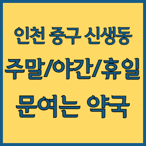 인천 중구 신생동 주말 문여는 약국 | 토요일 | 연휴 | 휴일 | 추석 | 명절 | 일요일 | 설날 | 야간 | 당번약국