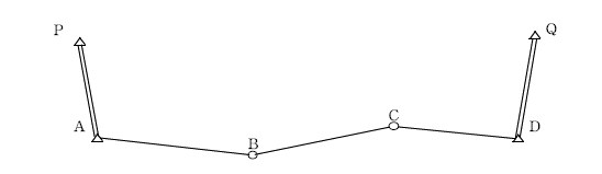 다음 그림과 같이 지적도근점측량을 방위각법으로 실시하고자 한다. A점에서 P점을 출발기지로 하여 D점에서 Q점까지 각 측선의 방위각을 구하여 주어진 서식에 기록하시오.